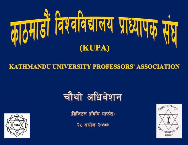 काभ्रे । काठमाडौं विश्वविद्यालय प्राध्यापक संघको चौथो महाधिवेशन सम्पन्न भएको छ । चौथो महाधिवेशनबाट सभापतिमा प्रा.डा. विबेक बराल तथा महासचिवमा डा. विकास अधिकारी निर्वाचित भएका छन् । संघको आइतबार सम्पन्न भर्चुअल चौथौं महाधिवेशनले ७ सदस्यीय कार्यसमिति चयन गरेको हो ।